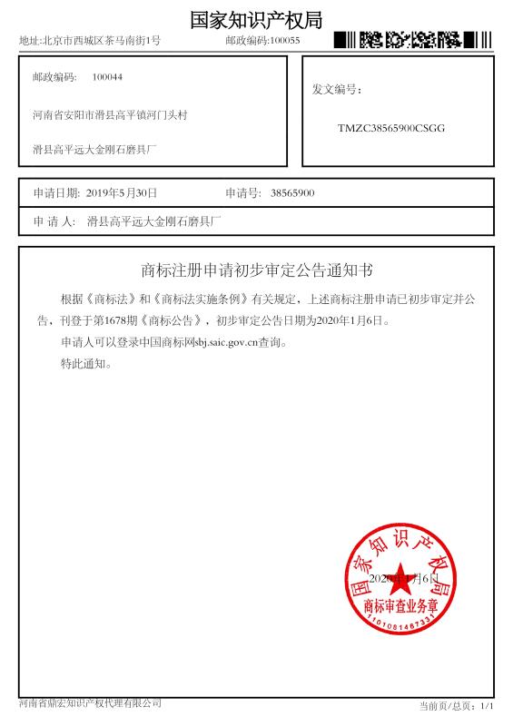商標(biāo)注冊(cè)申請(qǐng)初步審定公告通知書
